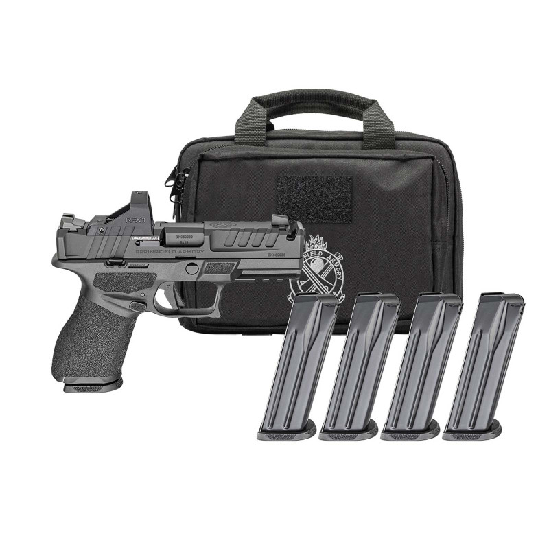 Gear Pac Includes Viridian RFX11 Green Dot sight, Pistol bag, 4 Magazines - (1) 15-Round, (3) 18-Round.