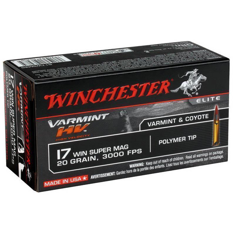 Winchester 17 Win Super Mag 25 20gr Varmint High Velocity. The world's fastest, most powerful modern rimfire cartridge. The most revolutionary rimfire cartridge for varmints that offers the downrange performance of a centerfire cartridge with the cost of a rimfire cartridge. With a speed of 3000fps, this is a game-changer for varmint and predator hunters.