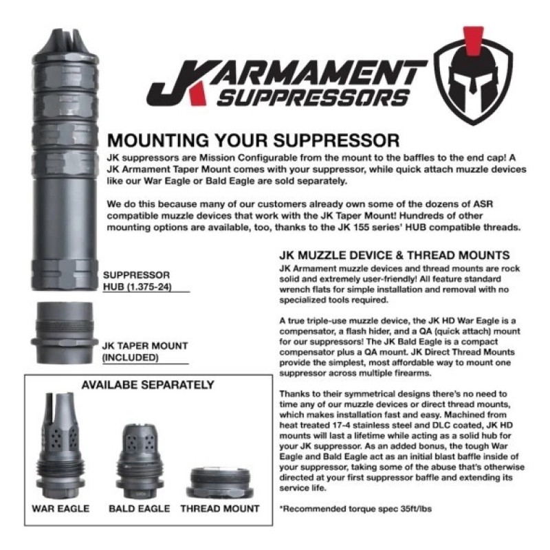 JK 155 PRO Quick Attach Taper Mount* (Please note this is a MOUNT and not a Muzzle Device)